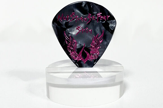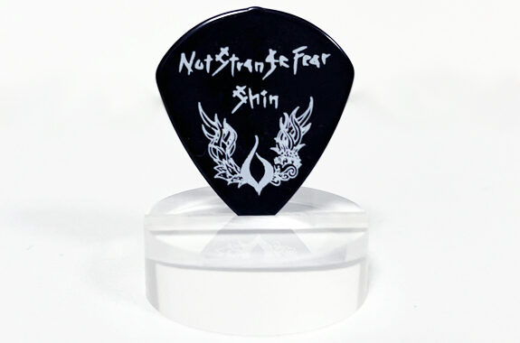 【仕様】 材質|セルロイド 形状|ジャズ ピック色|黒、ブラックパール 表面印刷色|銀、白、メタリックピンク 裏面印刷色|なし